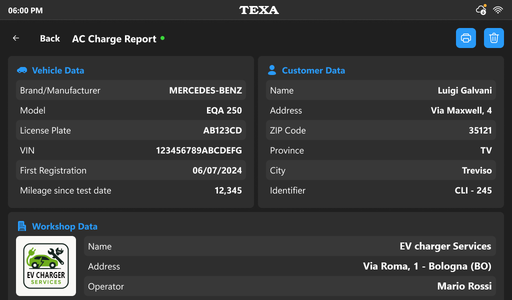 Vehicle repairers who own a TEXPACK E-DIAG CHARGER can provide customers with a certificate on the battery state of health with their own header.