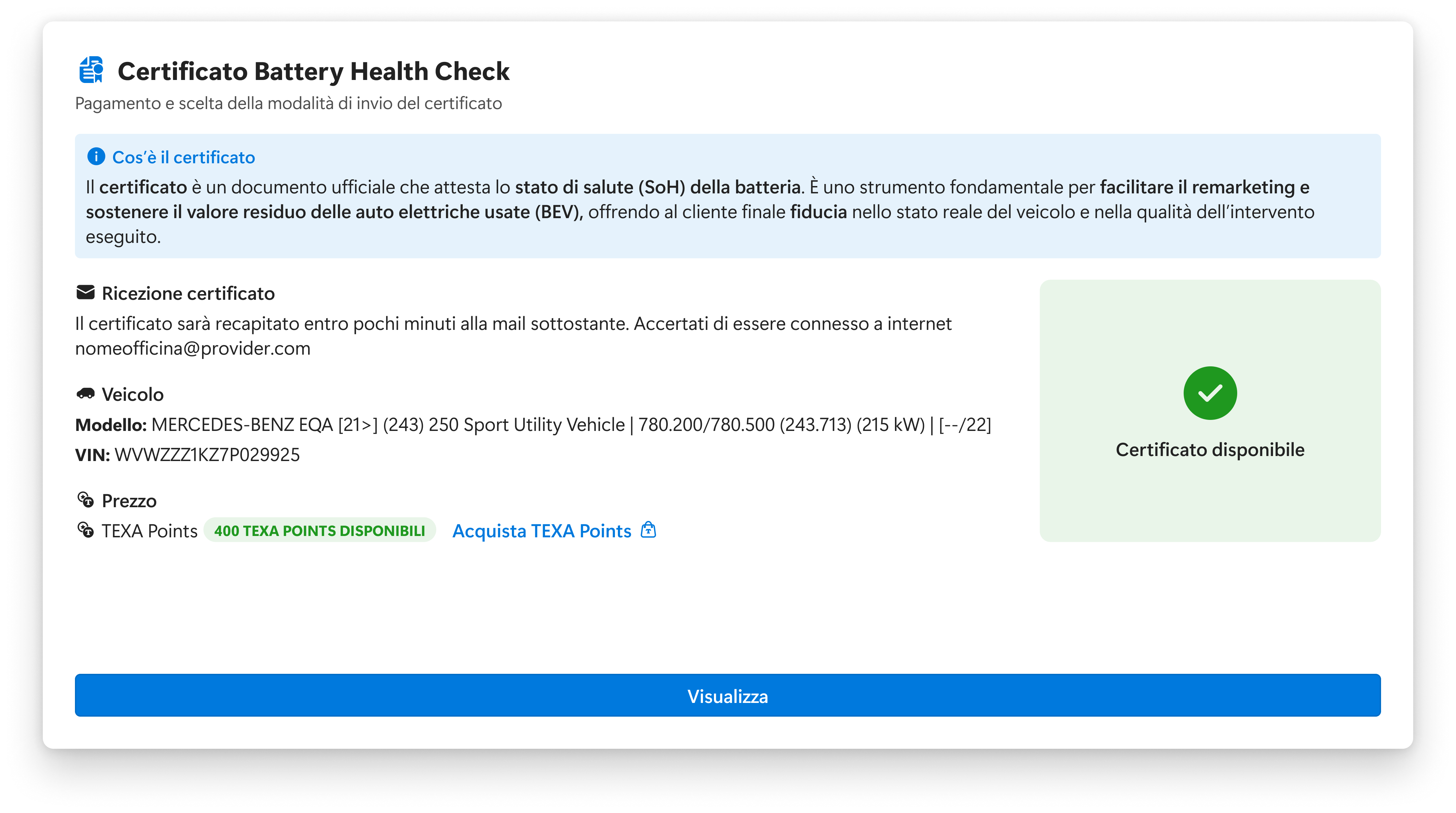 Moreover, at the end of the recharge, the customers also receive another certificate* related to the battery state of health.